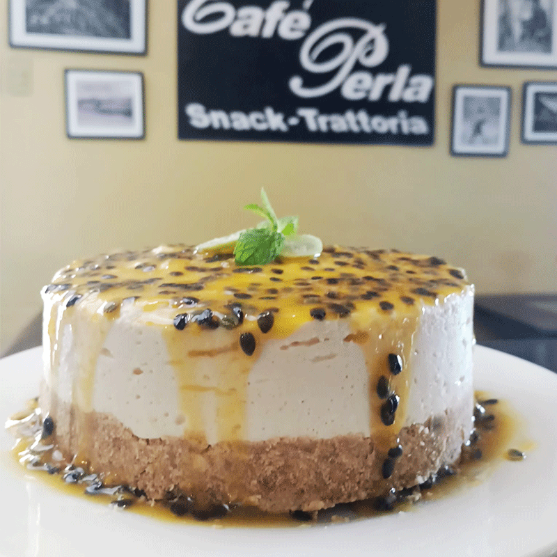 Una deliciosa base crocante de galleta que sostiene un suave y cremoso cheesecake, coronado con una fresca salsa de maracuyá y semillas naturales. El equilibrio perfecto entre dulzura y acidez, ideal para acompañar tu café favorito en un momento especial.